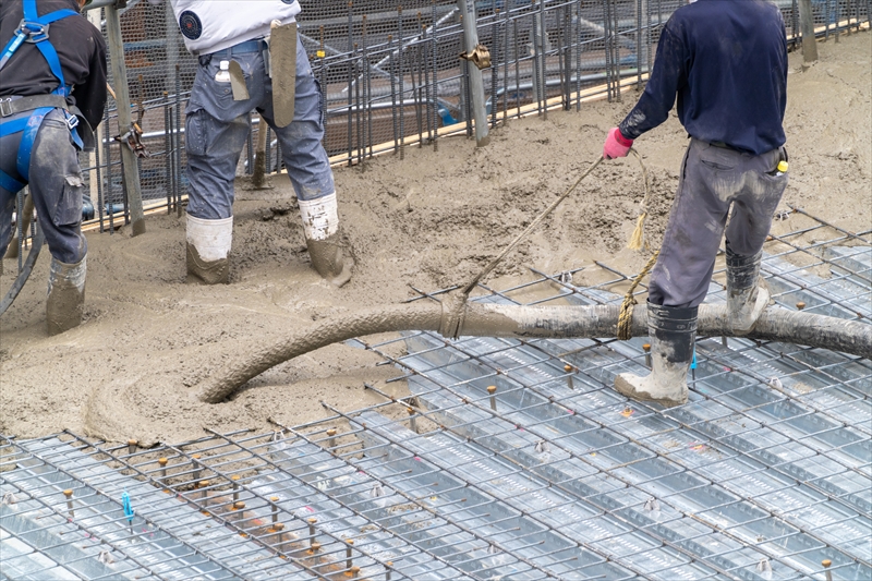 主に、コンクリートの運搬を行い、生コンクリートをコンクリートポンプ車で流し込む作業を行っています。